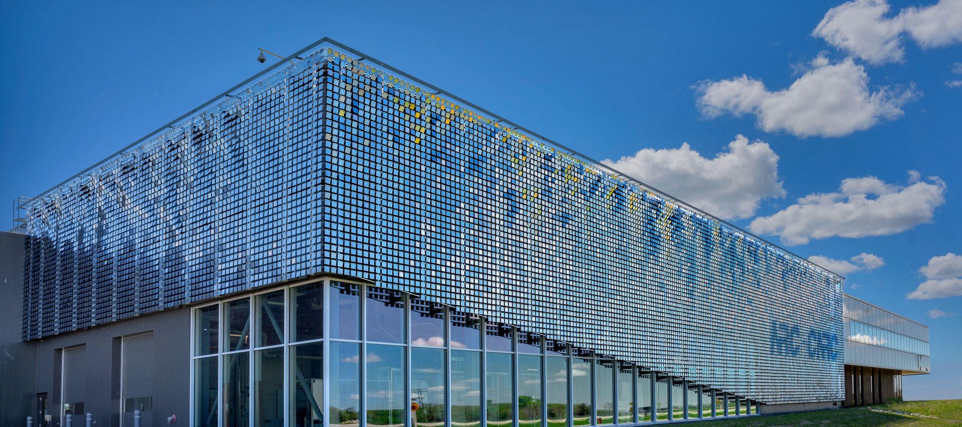 This sustainable and contemporary office building serves as the corporate head office and local retail branch for the Steinbach Credit Union.