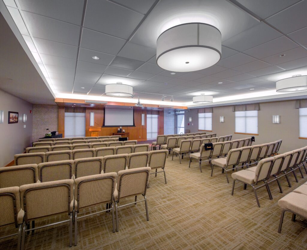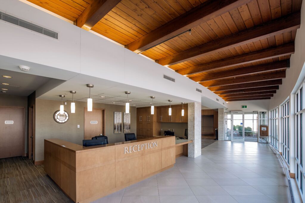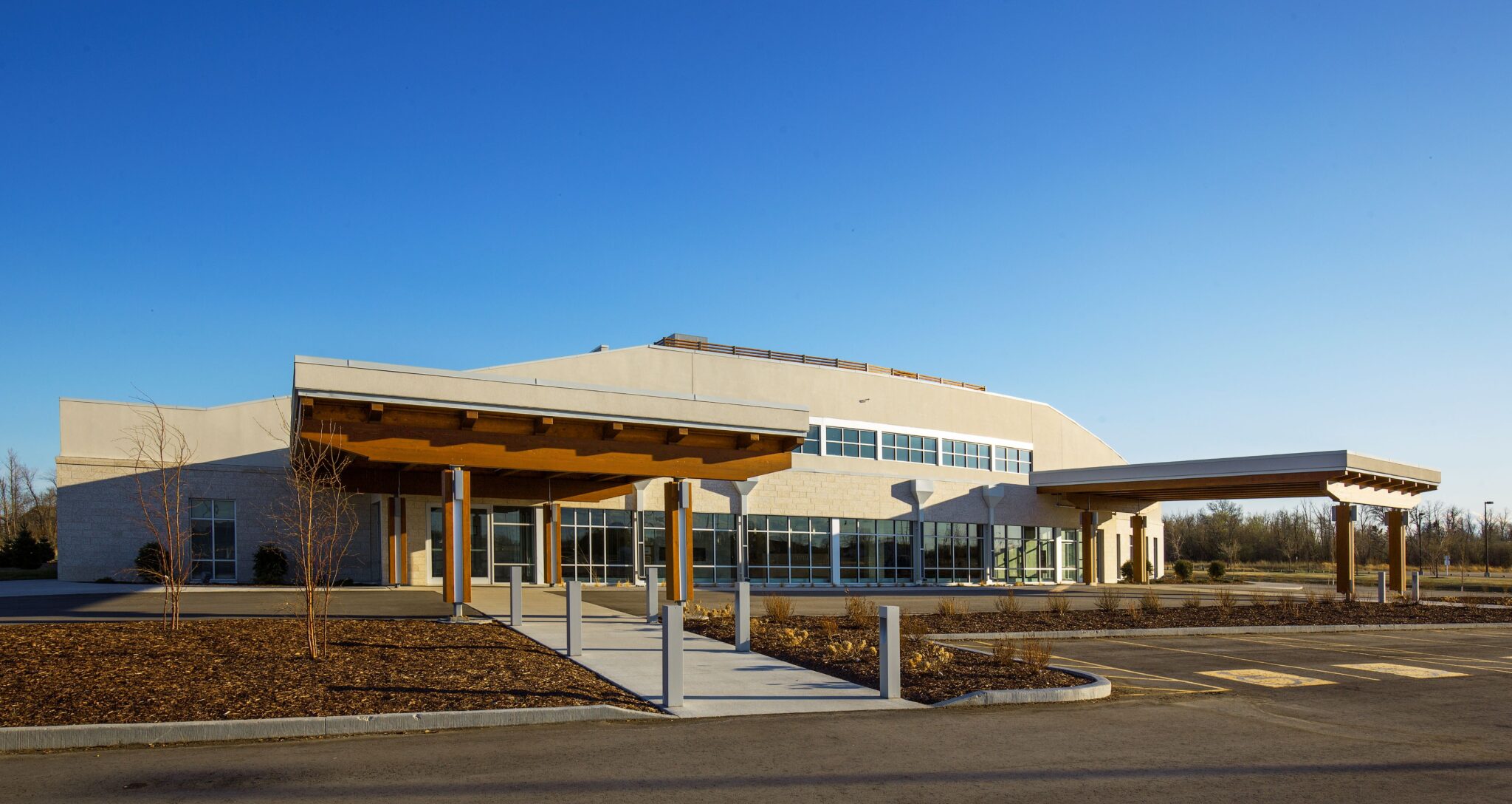 The Birchwood Funeral Chapel is a new 22,862 square foot facility, including the basement and mezzanine floor. The building has two chapels that accommodate 450 people. Construction consisted of cast-in-place concrete piles, concrete foundation, and a wood-framed structure. Exterior finishes included Tyndall stone veneer, EIFS, and a shingled roof.