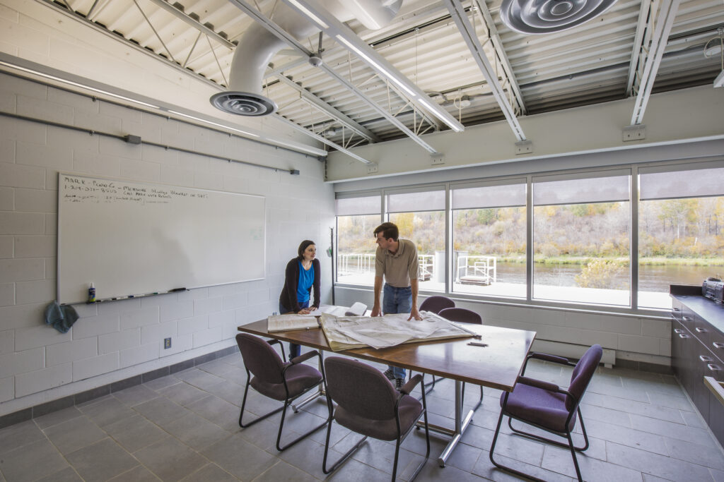 This state-of-the-art wastewater treatment facility consists of a main treatment building, lift station, and gate chamber all located on the same site near the Wabigoon River. The building and grounds were constructed using LEED principles for energy efficiency and green design, making it the first LEED Silver Certified sewage treatment plant in North America.