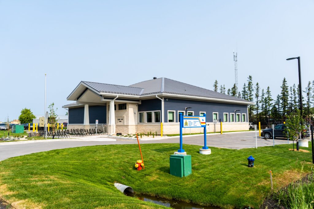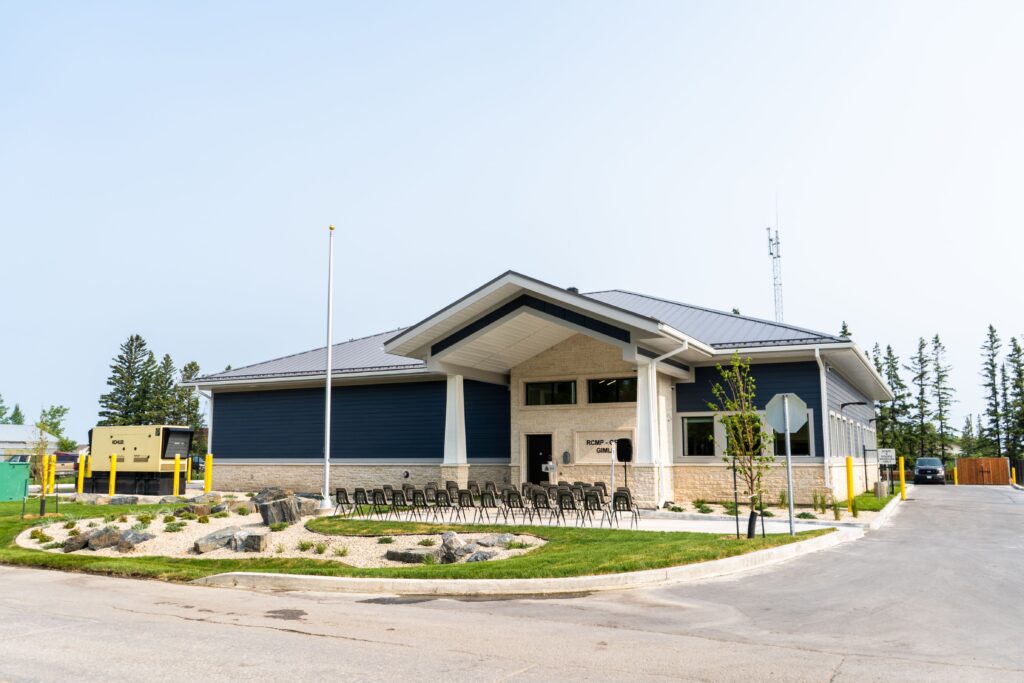 The Gimli RCMP Facility is a new 9,488 square foot Government of Canada RCMP detachment. The project includes geothermal heating and cooling system, and ancillary structures including a separate garage and radio tower. The wood-framed superstructure is supported on pre-cast driven piles and is enclosed with a metal roof, metal wall panels and Tyndall stone façade.